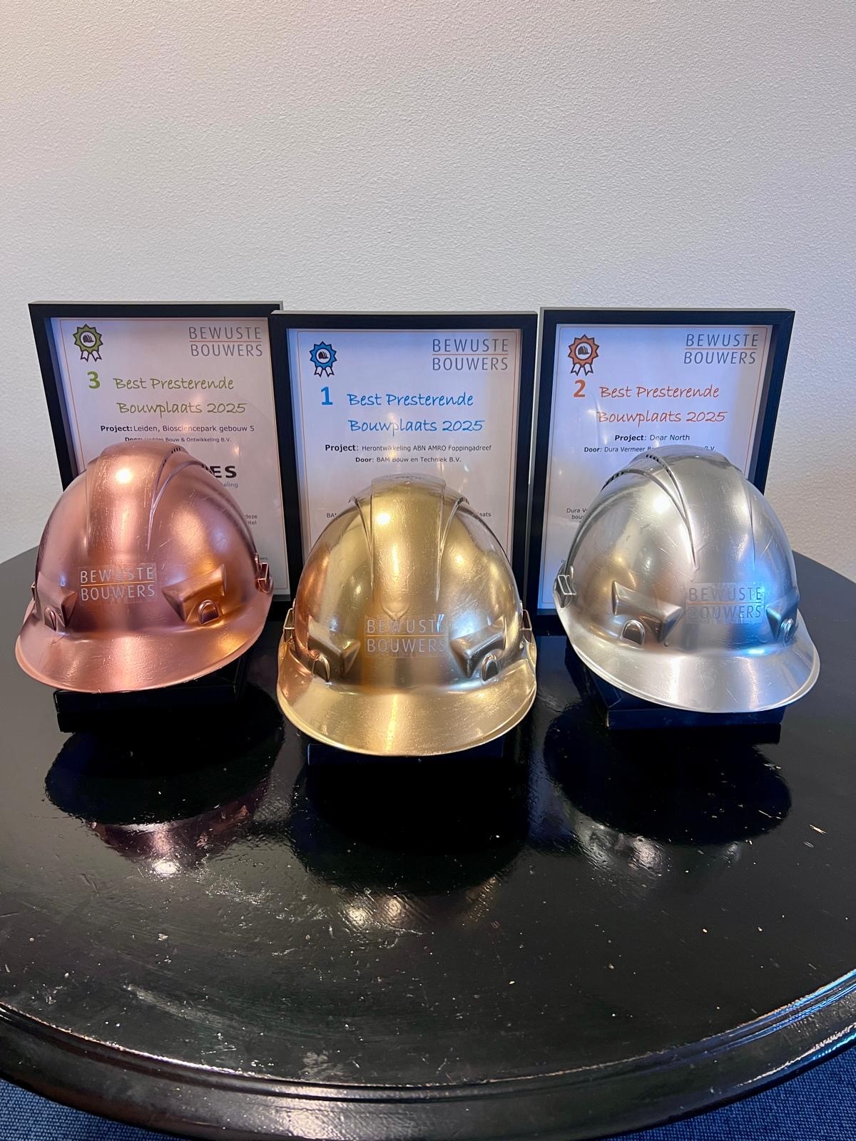 Ook dit jaar hebben we tijdens de BOOST-week de drie Best Presterende Bewuste Bouwers-bouwplaatsen in het zonnetje gezet met een Gouden, Zilveren en Bronzen helm. Uit maar liefst 677 actieve bouwplaatsen selecteerden we opnieuw een overtuigende top 3.